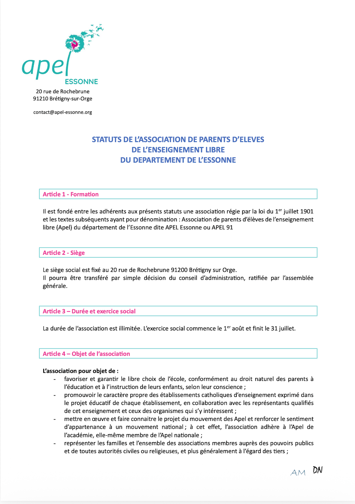 Les Statuts sont la carte d’identité et la « loi » de l’APEL du département de l’Essonne. Ils s’appliquent à toutes les APEL membres de notre APEL départementale.
